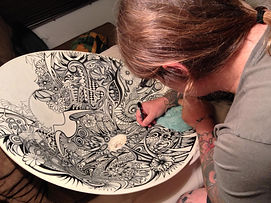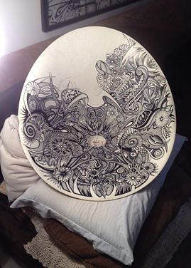 Tentei esboçar alguns desenhos num papel, mas, tudo só fluiu quando passei a desenhar, à mão livre, diretamente na peça